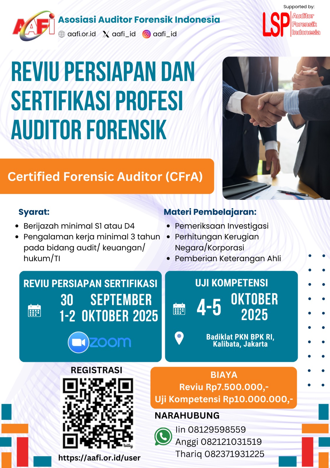 21 Sep 📢 AAFI Gelar Reviu dan Sertifikasi Profesi Auditor Forensik (CFrA) 2025 📢 Admin Nasional 21 September 2025
